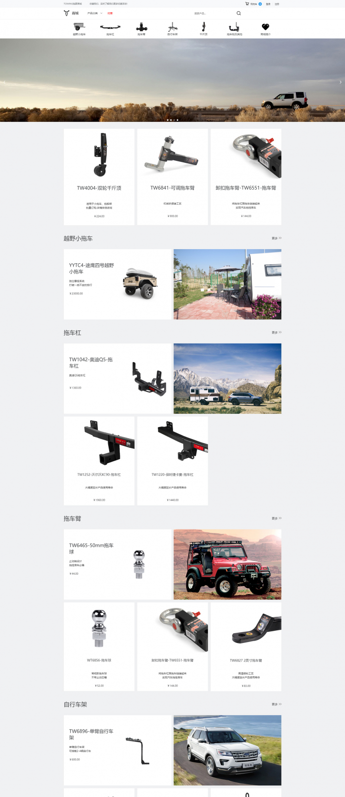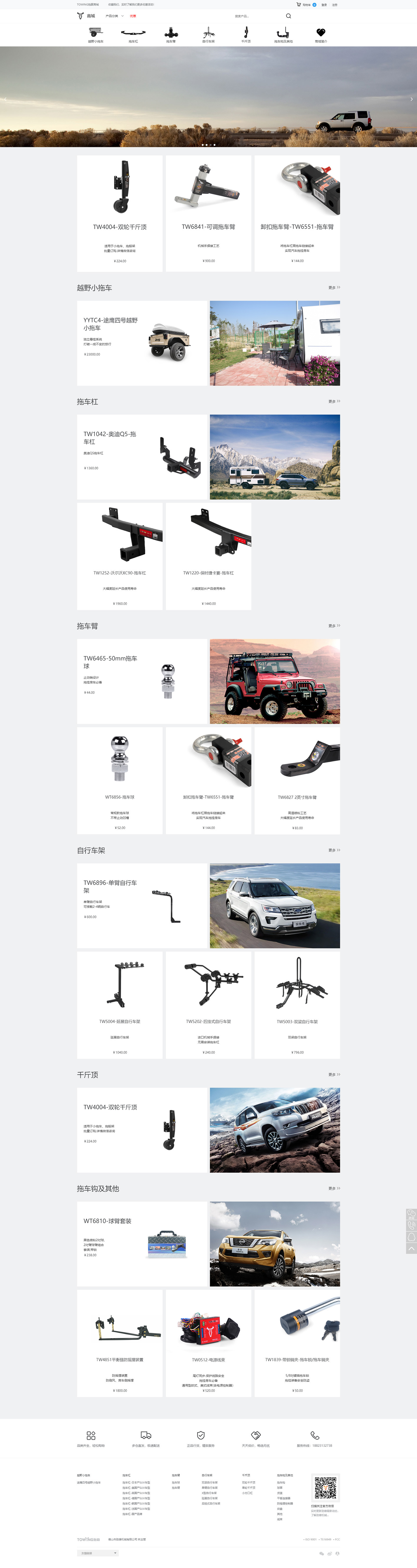 勁雄公司的產(chǎn)品包括拖掛附屬產(chǎn)品,如越野小拖車、拖車杠、拖車鉤、拖車臂、拖車球、球罩、拖車鎖、千斤頂、自行車架、貨籃等。