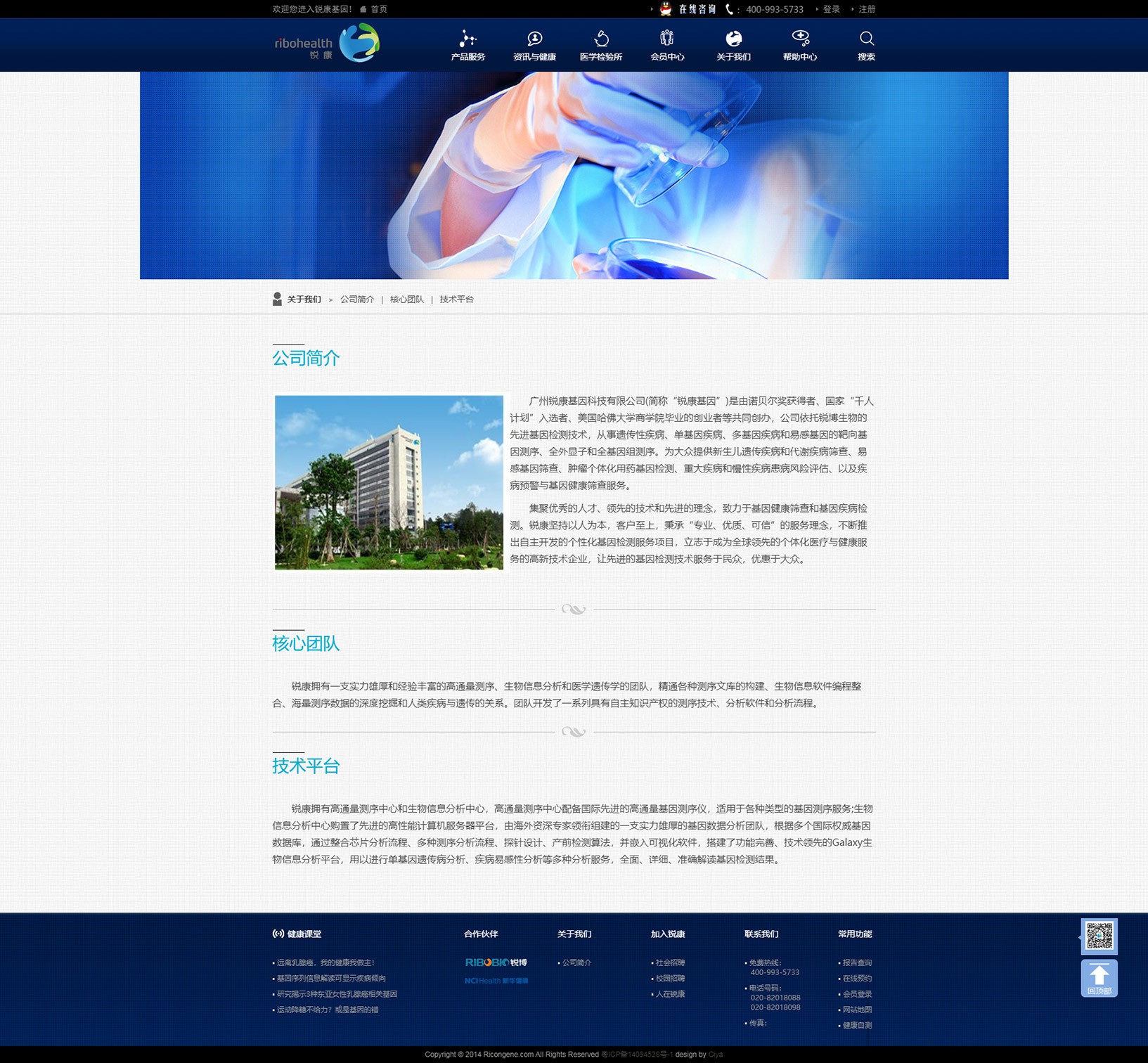 廣州銳康基因科技有限公司(簡稱“銳康基因”)是由諾貝爾獎獲得者、國家“千人計劃”入選者、美國哈佛大學商學院畢業(yè)的創(chuàng)業(yè)者等共同創(chuàng)辦,公司依托銳博生物的先進基因檢測技術,從事遺傳性疾病、單基因疾病、多基因疾病和易感基因的靶向基因測序、全外顯子和全基因組測序。為大眾提供新生兒遺傳疾病和代謝疾病篩查、易感基因篩查、腫瘤個體化用藥基因檢測、重大疾病和慢性疾病患病風險評估、以及疾病預警與基因健康篩查服務。